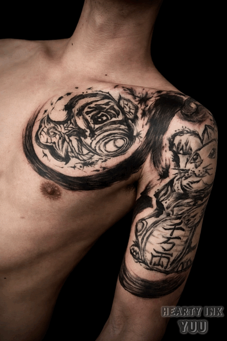 トライバルタトゥー・カラー・ブラック&グレー・レタリング・ワンポイント 和彫り(ジャパニーズスタイル)・カバーアップ・タッチアップ オールジャンルの刺青デザインに対応しています、デザインの持込にも対応いたします。